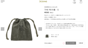 3coinsが展開している、廃棄される素材をリサイクルして販売している「THE RE」。
